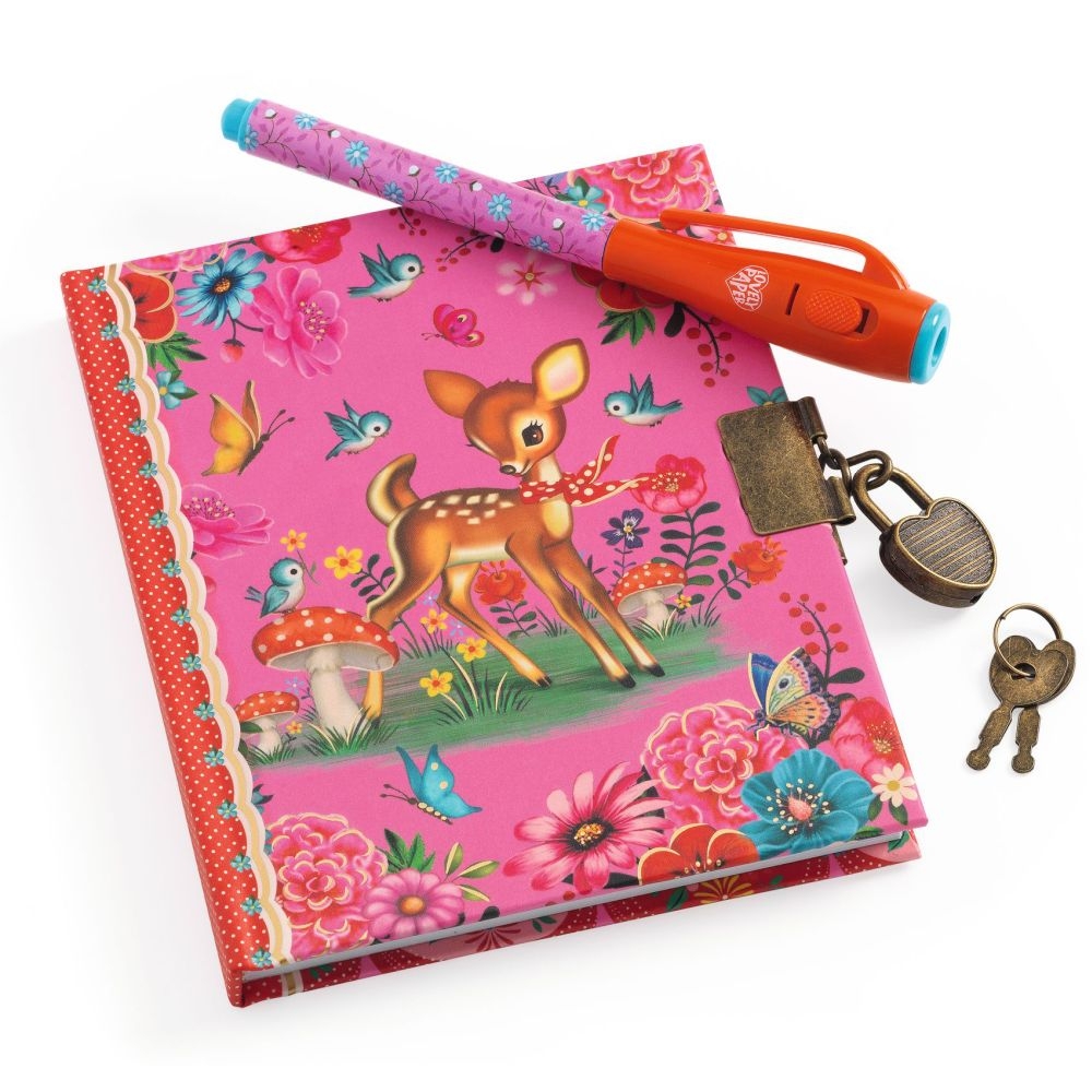 Μυστικό Σημειωματάριο ριγέ με κλειδαριά & Μαγικό Στυλό - Ελάφι (10x10) - Djeco