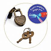 Η σειρά ημερολογίων από την εταιρία Djeco ήρθε για να κρατήσει ασφαλή τα μυστικά μικρών και μεγάλων. Εκτός από το όμορφα εικονογραφημένο ημερολόγιο με 88 σελίδες (120 gsm), στη συσκευασία περιλαμβάνεται μία κλειδαριά με δύο κλειδιά και ένα στυλό με αόρατο μελάνι, που εμφανίζεται μόνο όταν χρησιμοποιήσουμε τον φακό στο πάνω μέρος του. Προϊόν από υλικό πιστοποιημένο με FSC Mix (μείγμα υλικών από δάση πιστοποιημένα με FSC, ανακυκλωμένα υλικά ή / και ξύλο ελεγχόμενο από FSC).