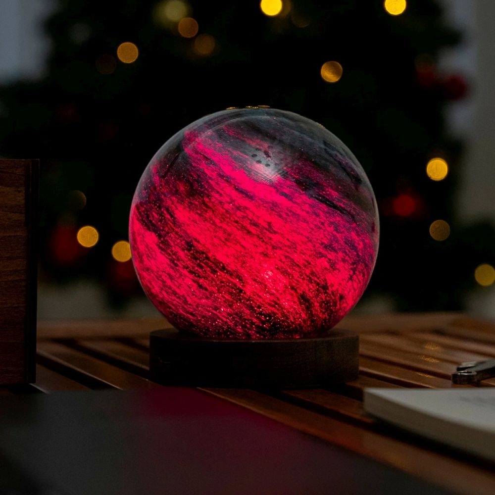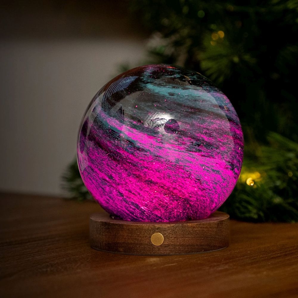 Ζήστε μοναδικές στιγμές χαλάρωσης με το AstraGlass Light – Stellar Ocean της Gingko. Το χειροποίητο γυάλινο φωτιστικό προσφέρει μια απαλή, μαγευτική λάμψη, ιδανική για ένα ήρεμο βράδυ στο σπίτι. Επιλέξτε ανάμεσα σε λευκό φως ή 7 περιστρεφόμενα RGB χρώματα, προσαρμόζοντας τη φωτεινότητα και το χρώμα με ένα απλό άγγιγμα του χάλκινου κουμπιού. Η βάση από FSC πιστοποιημένο ξύλο καρυδιάς συνδυάζει φυσική ομορφιά και σταθερότητα, ενώ η χειροποίητη γυάλινη σφαίρα εξασφαλίζει μοναδικότητα σε κάθε κομμάτι. Η φόρτιση γίνεται εύκολα μέσω USB-C και η προστατευτική βάση διασφαλίζει ότι τα έπιπλά σας μένουν ανέπαφα.