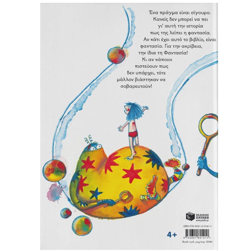 Η «Φαντασία» είναι ένα βιβλίο-επανάσταση, φτιαγμένο ειδικά για να ενισχύσει τη φαντασία των μικρών παιδιών και να διατηρήσει ζωντανή τη δημιουργική τους σκέψη για περισσότερο καιρό! Την ιστορία διηγούνται με χιούμορ τα «μισοτελειωμένα» δημιουργήματα της φαντασίας που δυστυχώς βρέθηκε με τα χρόνια κλεισμένη σε μια ντουλάπα. Το βιβλίο είναι διαδραστικό, αφού τα παιδιά καλούνται να βοηθήσουν την κλειδωμένη φαντασία το πρώτο πράγμα που θα έπρεπε να είναι πραγματικά ελεύθερο σε έναν άνθρωπο– χρησιμοποιώντας τη δική τους και ζωγραφίζοντας το μαγικό κλειδί που θα την ελευθερώσει. Καμία φαντασία δεν πρέπει να μένει φυλακισμένη. Και τα παιδιά το ξέρουν αυτό καλύτερα απ’ τον καθένα. Το θέμα είναι να μην το ξεχάσουν. Με τη «Φαντασία» η Κατερίνα Κρις επιλέγει αυτή τη φορά να μιλήσει στις μικρότερες ηλικίες, εκεί που η φαντασία των παιδιών υποχωρεί για να δώσει χώρο στη βαλμένη σε καλούπια παιδική καθημερινότητα. Εικονογραφικά, το βιβλίο έχει μια ιδιαίτερα έντονη παλέτα χρωμάτων, εμπνευσμένη από τον τρόπο που τα ίδια τα παιδιά χρησιμοποιούν τα χρώματα, κάτι που παρατήρησε η ίδια η δημιουργός στις ζωγραφιές που λαμβάνει μέσα από το κανάλι της στο YouTube «Μαμά, ζωγραφίζω με την Κρις!».