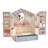 Μια πολύ εντυπωσιακή μπιζουτιέρα σε σχήμα μαγαζιού προστέθηκε στη συλλογή με τις μπιζουτιέρες της εταιρίας Djeco. Ανοίξτε από μπροστά για να εμφανιστεί το εσωτερικό του μαγαζιού με την ιδιαίτερη εικονογράφηση και τα συρτάρια αποθήκευσης στις δύο πόρτες και στο κέντρο. Κουρδίστε τη φιγούρα για να ακούσετε τη μελωδία του “The magic flute” από το Wolfgang Amadeus Mozart και να ταξιδέψετε παρατηρώντας τη φιγούρα να χορεύει. Εξαιρετική επιλογή δώρου για κάθε ηλικία που θα κοσμεί το παιδικό δωμάτιο και όχι μόνο. Κατάλληλη για παιδιά 4 ετών και άνω. Διαστάσεις 14.5 x 18.5 x 11εκ.