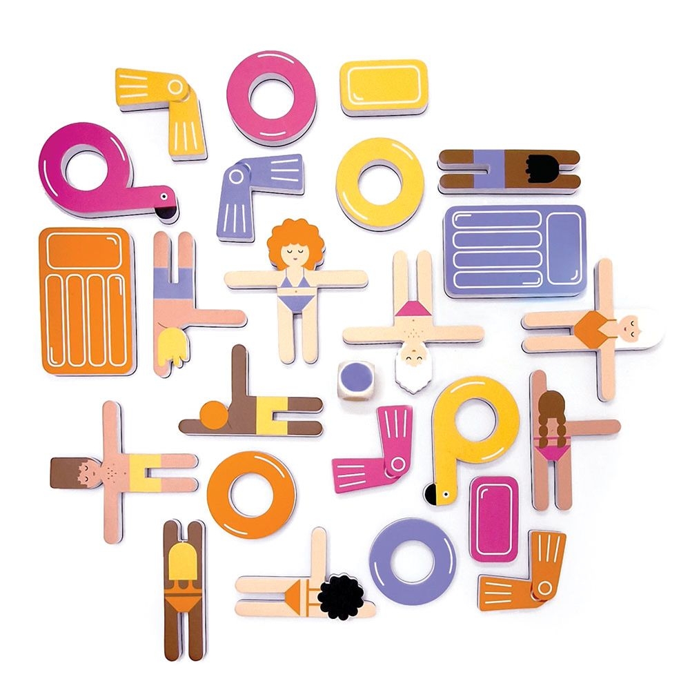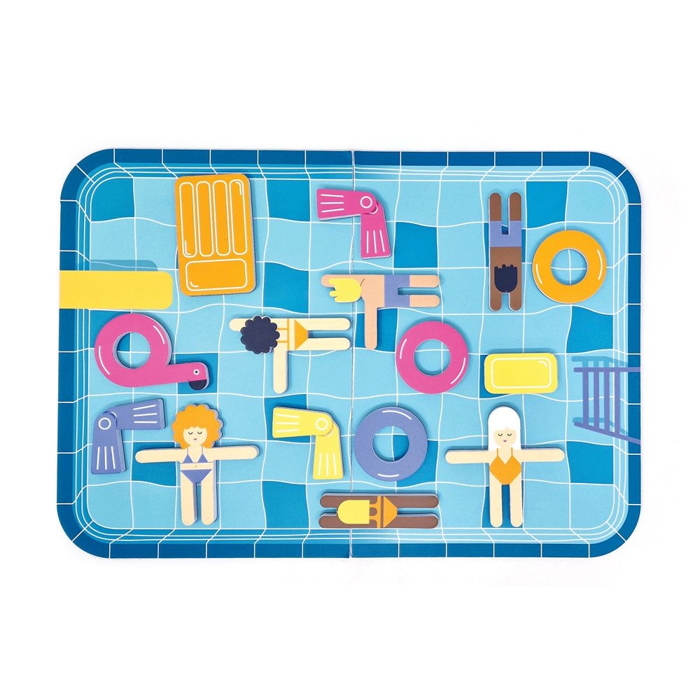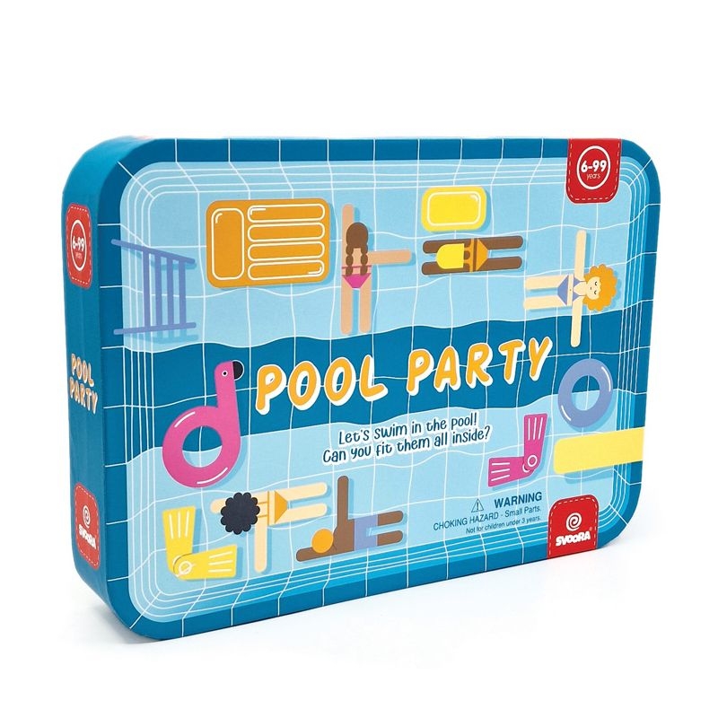 Ετοιμαστείτε για βουτιές στην πισίνα! Ένα διασκεδαστικό και δροσερό επιτραπέζιο παιχνίδι στρατηγικής για 2 παίκτες, από την εταιρία Svoora! Βουτήξτε και δείτε αν μπορείτε να τοποθετήσετε όλους τους κολυμβητές και τα επιπλέοντα αντικείμενά σας στην πισίνα. Θα καταφέρετε να ξεπεράσετε τον αντίπαλό σας και να αποφύγετε να μείνετε εκτός πισίνας; Ένα στρατηγικό παιχνίδι με 24 μαγνητικά ‘επιπλέοντα’ κομμάτια που αναπτύσσει γρήγορη σκέψη, επίλυση προβλημάτων και ικανότητες αντίληψης του χώρου. Ρίξτε το ζάρι για να δείτε αν θα πρέπει να αφαιρέσετε ένα κομμάτι ή να μετακινήσετε ένα επιπλέον αντικείμενο. Ο παίκτης που καταφέρνει να κρατήσει τα λιγότερα κομμάτια εκτός πισίνας, κερδίζει!