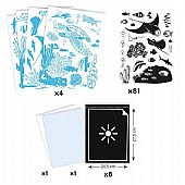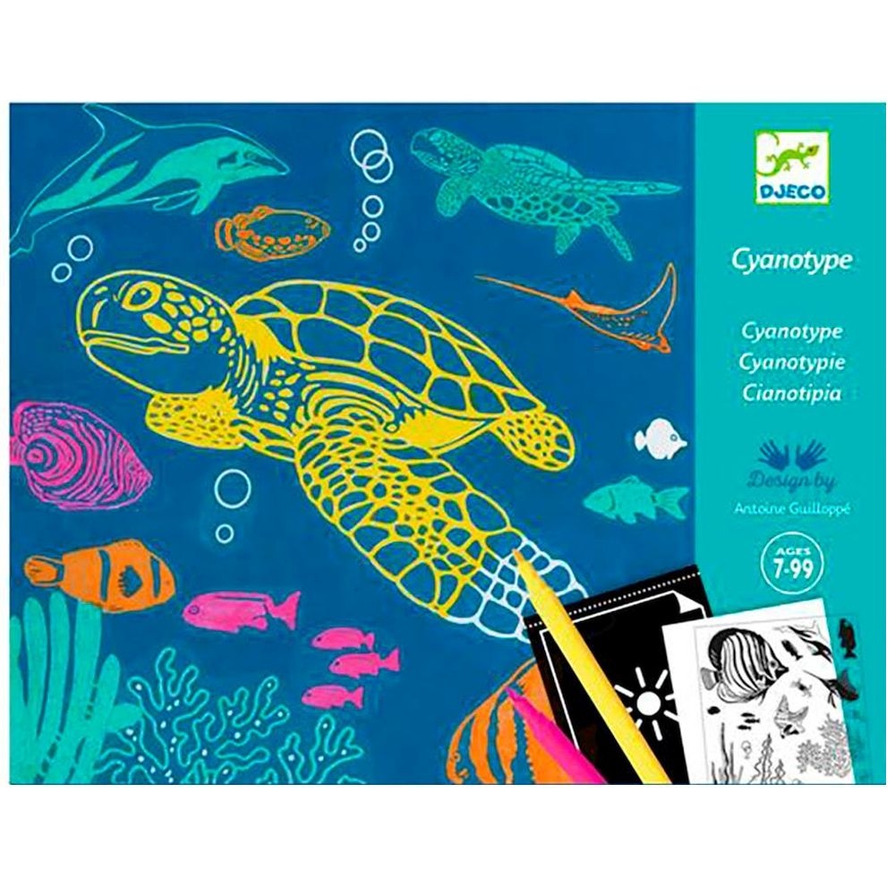 Δημιουργικό σετ από την εταιρεία Djeco, εμπνευσμένο από την τεχνική της κυανοτυπίας, που μετατρέπει το φως του ήλιου σε μαγικά έργα τέχνης. Τα παιδιά τοποθετούν αδιαφανή μοτίβα πάνω σε φωτοευαίσθητο χαρτί και, με την έκθεση στον ήλιο, αποτυπώνεται το αρνητικό τους σε μπλε φόντο. Στη συνέχεια, ξεπλένουν το χαρτί με καθαρό νερό και βλέπουν την εικόνα να ζωντανεύει μπροστά στα μάτια τους! Με την προσθήκη τεσσάρων μαρκαδόρων, οι σκηνές μεταμορφώνονται σε πολύχρωμες υποθαλάσσιες εικόνες. Μια δημιουργική δραστηριότητα που δεν απαιτεί χημικά, μπορεί να επαναλαμβάνεται ξανά και ξανά και καλλιεργεί τη φαντασία και τη δημιουργικότητα.