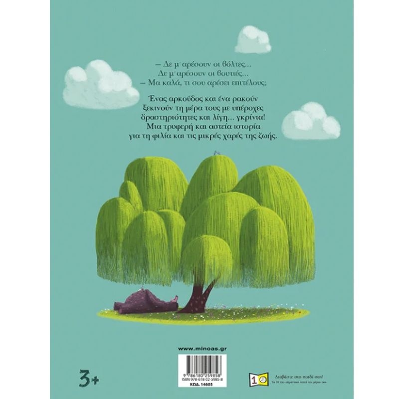 Δε μ’ αρέσουν οι βόλτες… Δε μ’ αρέσουν οι βουτιές… - Μα καλά, τι σου αρέσει επιτέλους; Ένας αρκούδος και ένα ρακούν ξεκινούν τη μέρα τους με υπέροχες δραστηριότητες και λίγη… γκρίνια! Μια τρυφερή και αστεία ιστορία για τη φιλία και τις μικρές χαρές της ζωής.