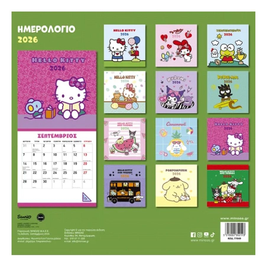 Μηνιαίο Ημερολόγιο Τοίχου 2026 Hello Kitty & Friends από τις εκδόσεις Μίνωας.