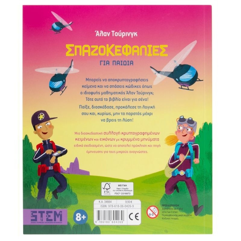 Μπορείς να αποκρυπτογραφήσεις κείμενα και να σπάσεις κώδικες όπως ο ιδιοφυής μαθηματικός Άλαν Τούρινγκ; Τότε αυτό το βιβλίο είναι για σένα! Παίξε, διασκέδασε, προκάλεσε τη λογική σου και, κυρίως, μην τα παρατάς μέχρι να βρεις τη λύση! Μια διασκεδαστική συλλογή κρυπτογραφημένων κειμένων και εικόνων με κρυμμένα μηνύματα ειδικά σχεδιασμένη, ώστε να αποτελεί πρόκληση και πηγή έμπνευσης για τους μικρούς αναγνώστες.