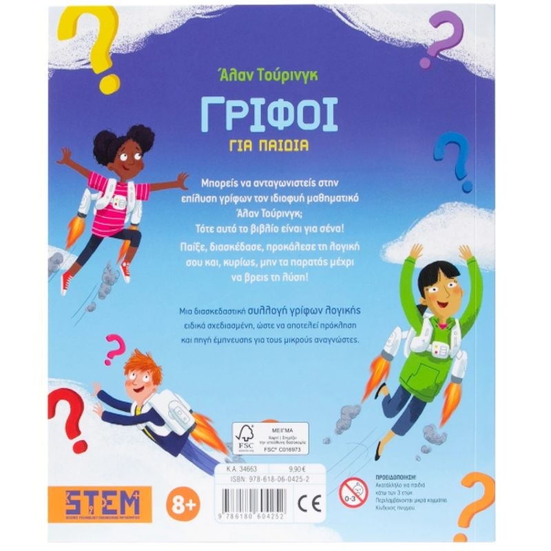 Μπορείς να ανταγωνιστείς στην επίλυση γρίφων τον ιδιοφυή μαθηματικό Άλαν Τούρινγκ; Τότε αυτό το βιβλίο για σένα! Παίξε, διασκέδασε, προκάλεσε τη λογική σου και, κυρίως, μην τα παρατάς μέχρι να βρεις τη λύση! Μια διασκεδαστική συλλογή γρίφων λογικής ειδικά σχεδιασμένη, ώστε να αποτελεί πρόκληση και πηγή έμπνευσης για τους μικρούς αναγνώστες.