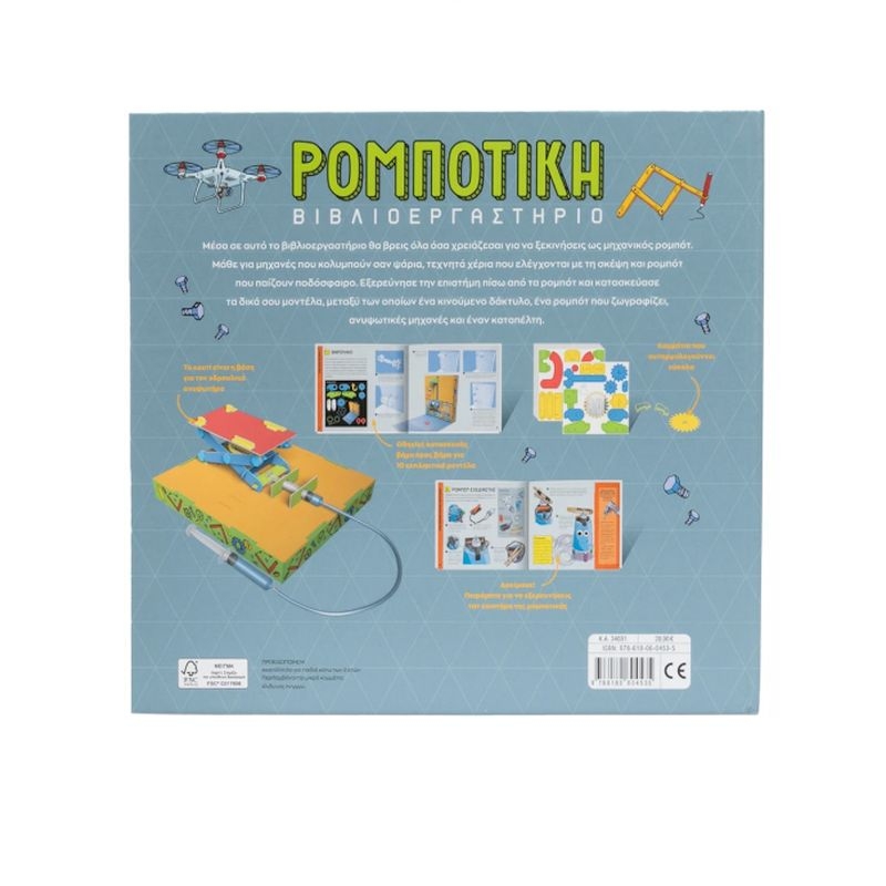 Μέσα σε αυτό το βιβλιοεργαστήριο θα βρεις όλα όσα χρειάζεσαι για να ξεκινήσεις ως μηχανικός ρομπότ. Μάθε για μηχανές που κολυμπούν σαν ψάρια, τεχνητά χέρια που ελέγχονται με τη σκέψη και ρομπότ που παίζουν ποδόσφαιρο. Εξερεύνησε την επιστήμη πίσω από τα ρομπότ και κατασκεύασε τα δικά σου μοντέλα, μεταξύ των οποίων ένα κινούμενο δάκτυλο, ένα ρομπότ που ζωγραφίζει, ανυψωτικές μηχανές και έναν καταπέλτη.