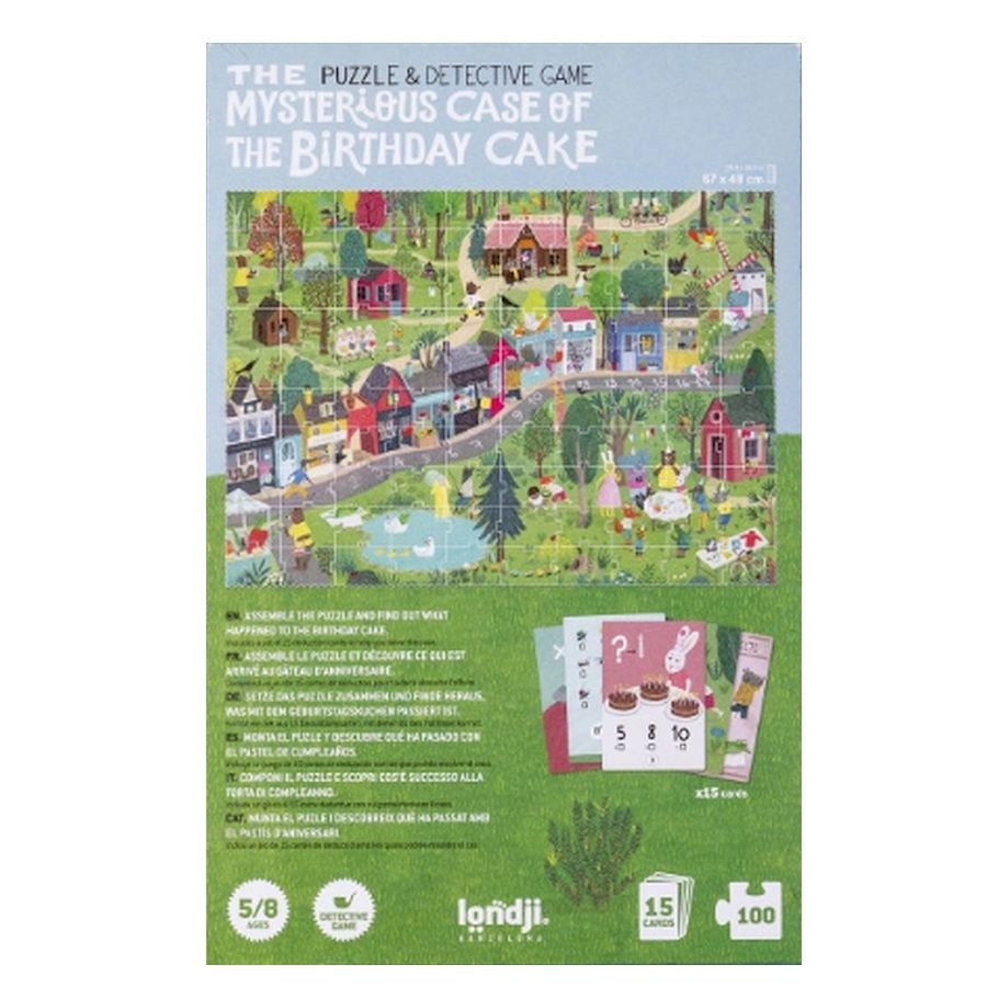 Συναρμολογήστε το παζλ 100 κομματιών και ανακαλύψτε τι συνέβη με την τούρτα γενεθλίων! Χρησιμοποιήστε τις 15 κάρτες υπόθεσης που περιλαμβάνονται στη συσκευασία για να συλλέξετε στοιχεία και να λύσετε το μυστήριο. Μια συναρπαστική εμπειρία γεμάτη ανατροπές και εκπλήξεις για τους μικρούς ντετέκτιβ!