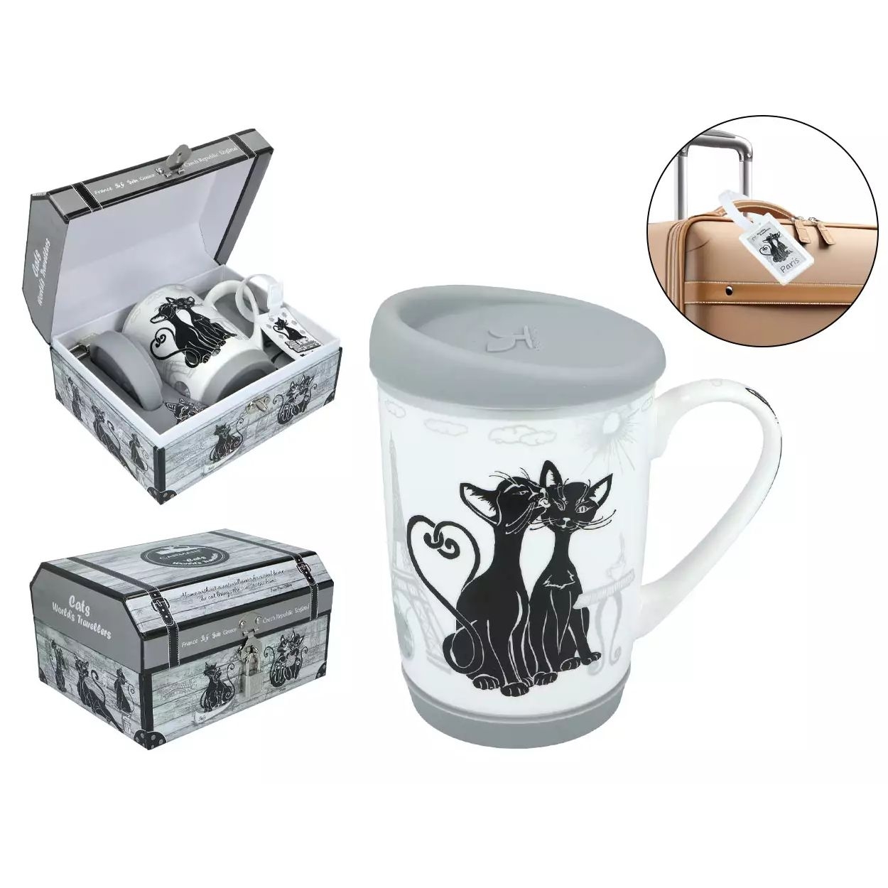 Κούπα Κεραμική με Βάση & Καπάκι σε Κουτί Δώρου - Cat World in Paris (375ml) - Carmani