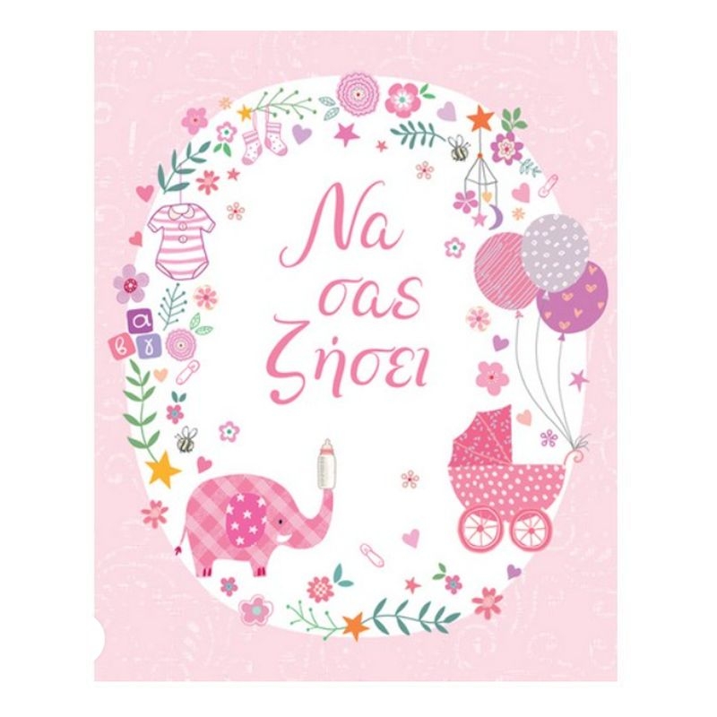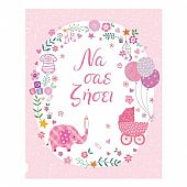Ευχετήρια Κάρτα με Φάκελο - Να σας ζήσει (Ροζ Ελέφαντας/15x17) - FunCreations