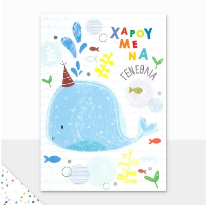 Ευχετήρια Κάρτα με Φάκελο - Χαρούμενα Γενέθλια (Φάλαινα/13.5x16.5) - FunCreations