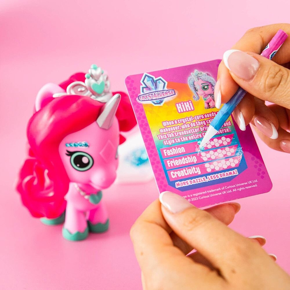 Καλωσόρισες στον μαγευτικό Κρυσταλλόκοσμο του Crystalverse, όπου κάθε μονόκερος λάμπει με τη δική του προσωπικότητα και στυλ! Γνώρισε την Kiki, τη μονόκερο που λατρεύει τη μόδα και δεν πάει πουθενά χωρίς τη λάμψη της. Δημιουργική, γεμάτη φαντασία και πάντα πρόθυμη να βοηθήσει τους φίλους της, η Kiki είναι η ψυχή της παρέας των Crystalcorns. Με το Crystalverse Classic Kit, μπορείς να φτιάξεις τη δική σου Kiki, στολίζοντάς τη με εκθαμβωτικούς κρυστάλλους και δίνοντας ζωή στον δικό σου μαγικό μονόκερο γεμάτο χρώμα και φως.