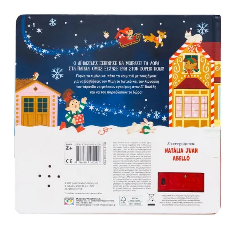 Ο Αϊ-ΒασΙλης ξεκΙνησε να μοιράζει τα δώρα στα παιδιά, όμως ξέχασε ένα στον Βόρειο Πόλο! Γύρνα το τιμόνι και πάτα τα κουμπιά με τους ήχους για να βοηθήσεις τον Μίμη το ξωτικό και τον Χιονούλη τον τάρανδο να φτάσουν εγκαίρως στον Αϊ-Βασίλη και να του παραδώσουν το δώρο!
