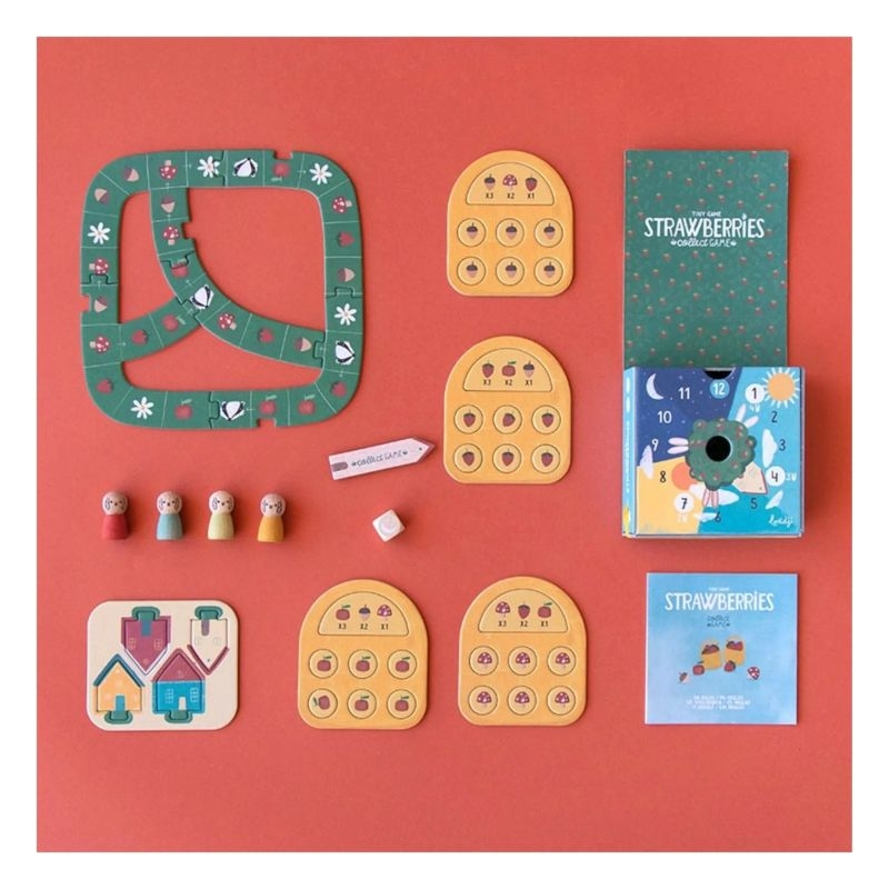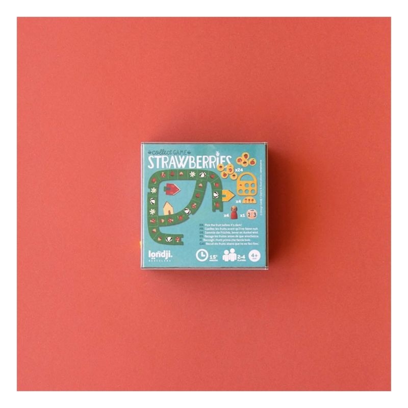 Μια φορά κι έναν καιρό... υπήρχε μια αποικία κουνελιών που έπρεπε να μαζέψει φρούτα πριν νυχτώσει. Όμως προσοχή! Ένας πονηρός ασβός περιπλανιέται στο δάσος, έτοιμος να κλέψει φαγητό από τα καλάθια! Το Strawberries από τη σειρά Tiny Games της Londji είναι ένα ευφάνταστο επιτραπέζιο στρατηγικής για παιδιά από 4 ετών. Οι παίκτες ρίχνουν το ζάρι, μαζεύουν φρούτα και προσπαθούν να γεμίσουν το καλάθι τους πριν το ρολόι δείξει 12. Γρήγορη σκέψη, λίγη τύχη και πολύ γέλιο κάνουν κάθε γύρο μοναδικό! Χάρη στο μικρό του μέγεθος, χωράει στην τσάντα ή την τσέπη σας — ιδανικό για ταξίδια, εκδρομές και στιγμές διασκέδασης όπου κι αν βρίσκεστε.