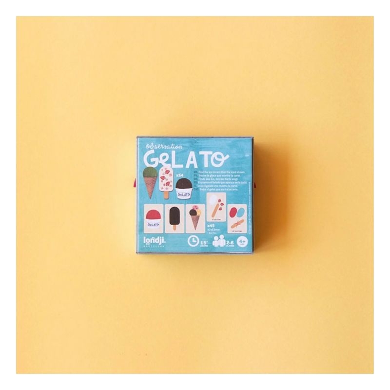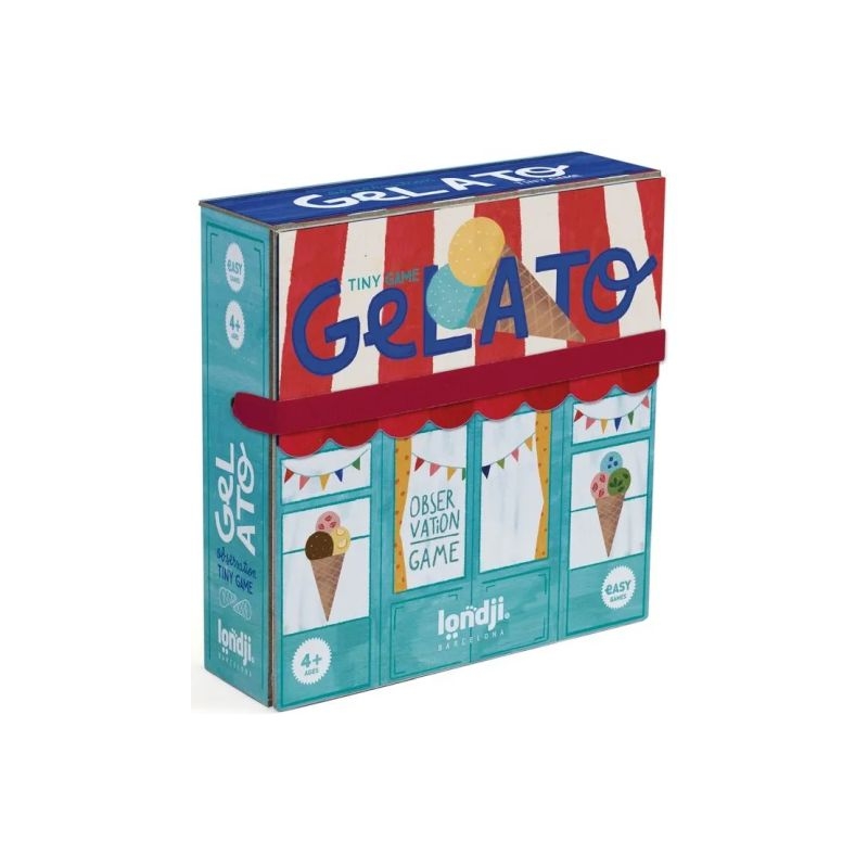 Παρατήρηση, ταχύτητα και γλυκιά δράση σε ένα μικρό κουτί! Με τη νέα σειρά Tiny Games, η Londji φέρνει μικρά παιχνίδια για μεγάλες περιπέτειες! Χωράνε στην τσέπη σας και σας ακολουθούν παντού. Όπου κι αν πάτε, η διασκέδαση είναι πάντα μαζί σας! Μια φορά κι έναν καιρό… υπήρχε ένα παγωτατζίδικο γεμάτο με πεντανόστιμες γεύσεις και χρώματα. Οι μπάλες παγωτού εξαφανίζονταν με αστραπιαία ταχύτητα. Ποιος θα καταφέρει να βρει το σωστό παγωτό πρώτος; Το Gelato είναι ένα γρήγορο παιχνίδι παρατήρησης και ταχύτητας, όπου οι παίκτες πρέπει να συγκρίνουν, να ψάξουν και να αντιδράσουν γρήγορα για να κερδίσουν τη γλυκιά νίκη!