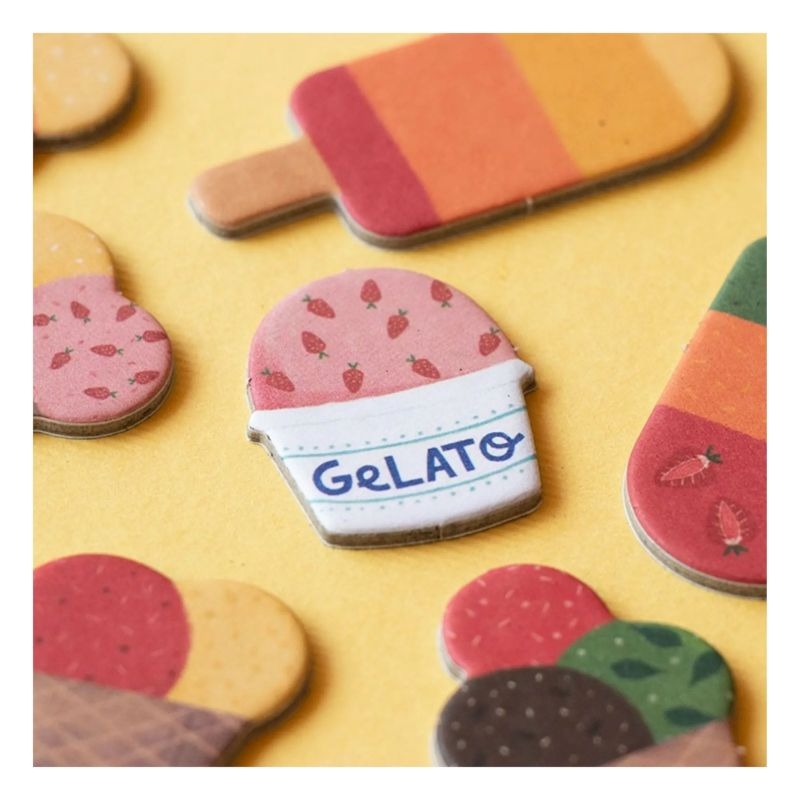 Περιλαμβάνει: 45 κάρτες παγωτού, 54 παγωτά σε διαφορετικά σχήματα και χρώματα.