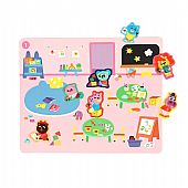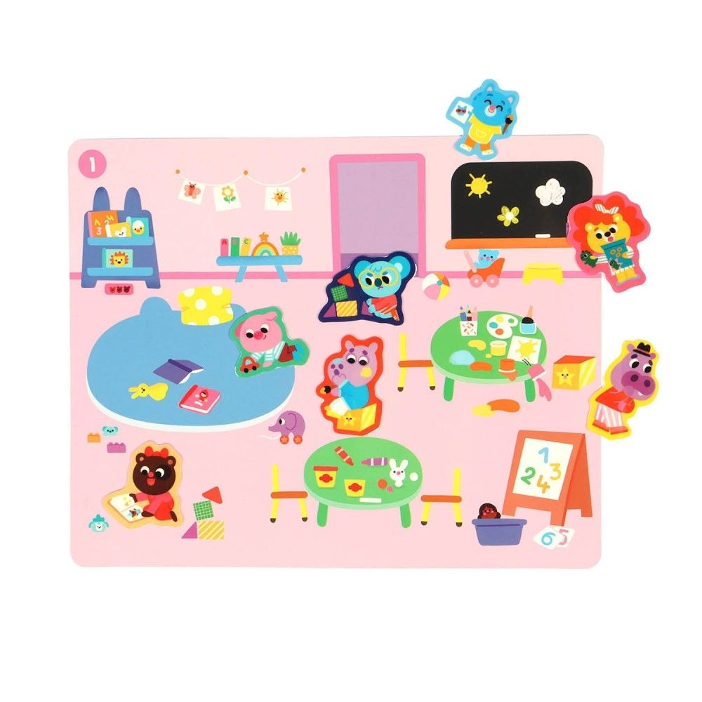 Περιλαμβάνει: 4 σκηνές (πίνακες) για να διακοσμηθούν, 50 ανάγλυφα επανατοποθετούμενα αυτοκόλλητα για πολλαπλή χρήση σε έντονα χρώματα.