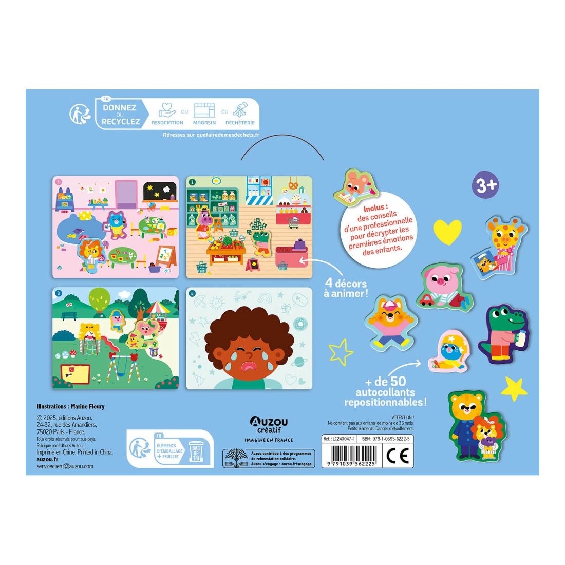 Μια διασκεδαστική δραστηριότητα που βοηθά τα παιδιά να ανακαλύψουν και να κατανοήσουν τα πρώτα τους συναισθήματα! Κάθε σετ περιλαμβάνει 4 σκηνές και 50 επανατοποθετούμενα ανάγλυφα αυτοκόλλητα, ιδανικά για μικρά χεράκια. Η δραστηριότητα συνοδεύεται από οδηγό συμβουλών από ειδικό, για να υποστηρίξουν οι γονείς την ανακάλυψη των συναισθημάτων με διασκεδαστικό και δημιουργικό τρόπο.