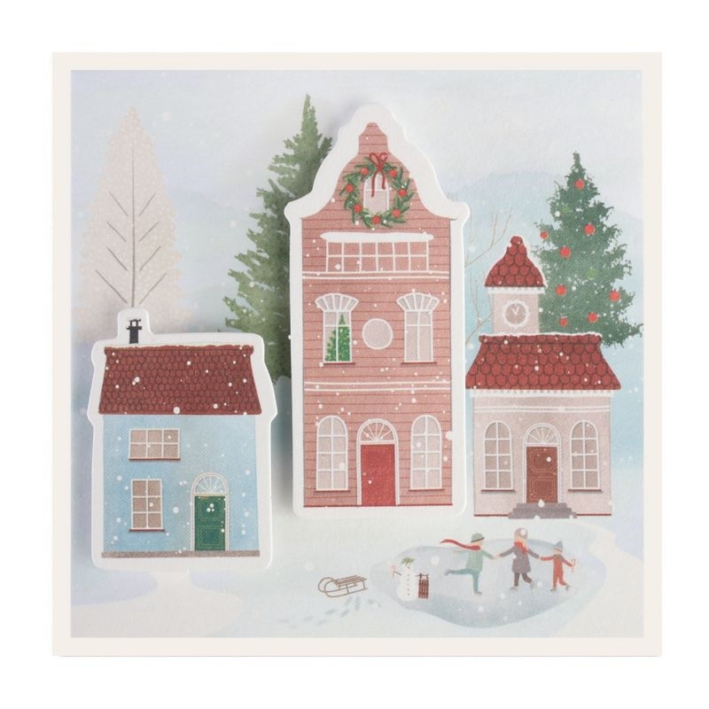 Χριστουγεννιάτικη κάρτα ανάγλυφη με Φάκελο - Snowy Houses (8.5x8) - ArteBene