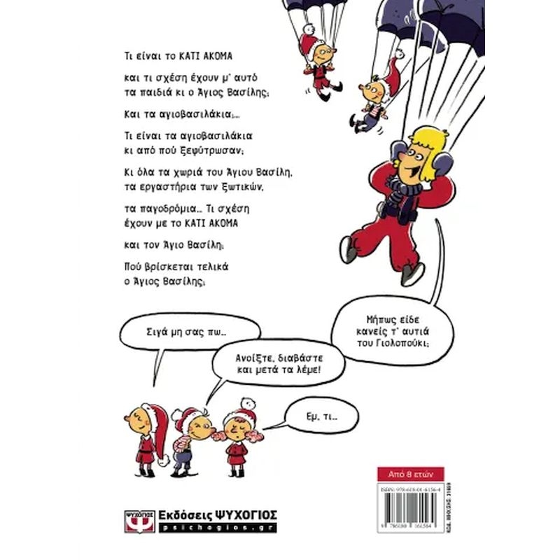 Τι είναι το ΚΑΤΙ ΑΚΟΜΑ και τι σχέση έχουν μ’ αυτό τα παιδιά κι ο Άγιος Βασίλης; Και τα αγιοβασιλάκια;… Τι είναι τα αγιοβασιλάκια κι από πού ξεφύτρωσαν; Κι όλα τα χωριά του Άγιου Βασίλη, τα εργαστήρια των ξωτικών, τα παγοδρόμια… Τι σχέση έχουν με το ΚΑΤΙ ΑΚΟΜΑ και τον Άγιο Βασίλη;…Πού βρίσκεται τελικά ο Άγιος Βασίλης;