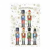 Χριστουγεννιάτικη ευχετήρια κάρτα με σχέδιο καρυοθραύστες και χώρο μέσα στην κάρτα για να αναπτύξετε τις ευχές σας. Είτε πρόκειται για δώρο είτε για ατομική παρουσίαση αυτήν την κάρτα θα την θυμόμαστε!
