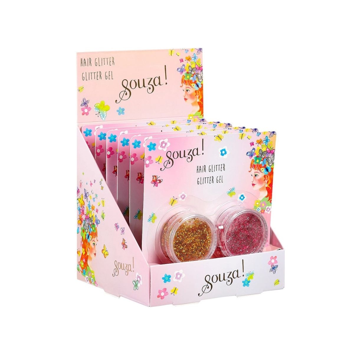 Έχεις πάρτι και θέλεις να ξεχωρίσεις με λίγη παραπάνω λάμψη; Με το glitter gel μαλλιών της Souza θα δείχνεις πραγματικά… εκτυφλωτική! Απλά άπλωσε λίγη ποσότητα στα μαλλιά σου και θα αποκτήσεις αμέσως ένα εντυπωσιακό, λαμπερό look. Το σετ περιλαμβάνει 2 βαζάκια glitter gel σε ροζ και χρυσή απόχρωση, ιδανικά για να τα χρησιμοποιήσεις μόνα τους ή να τα συνδυάσεις για ακόμη πιο μαγικό αποτέλεσμα. Το πινέλο εφαρμογής που περιέχεται στη συσκευασία κάνει την τοποθέτηση εύκολη και ακριβή. Με το σετ γκλίτερ μαλλιών της Souza, κάθε εμφάνιση αποκτά παραμυθένια λάμψη και κάθε στιγμή γίνεται λίγο πιο… μαγική.