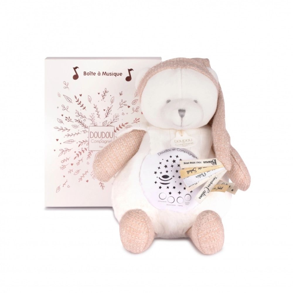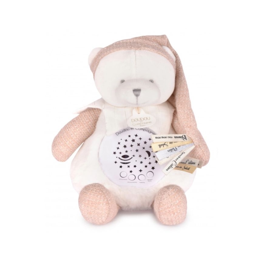 Το Πρώτο μου Μουσικό Φωτάκι Νυκτός - Λούτρινος Προτζέκτορας Ροζέ Αρκουδάκι - Doudou & Compagnie