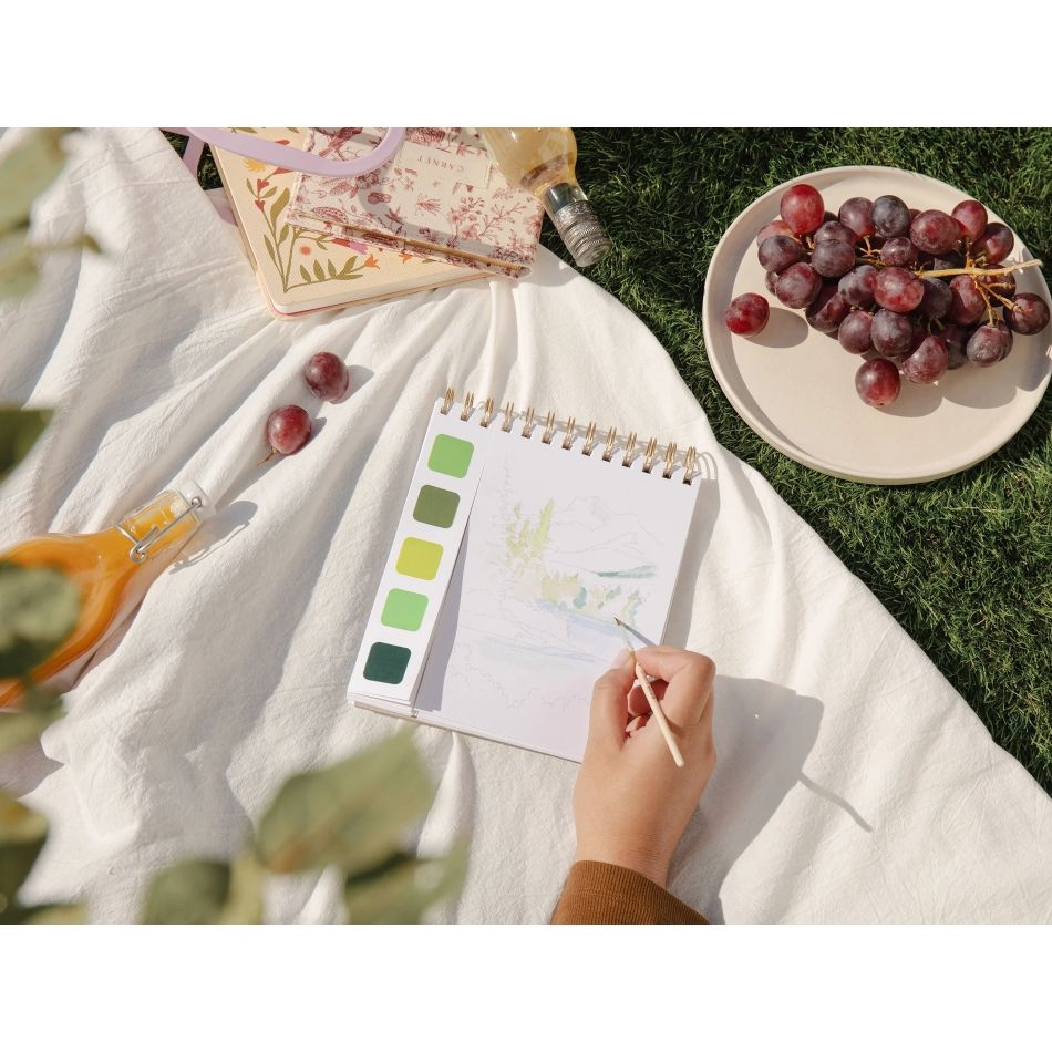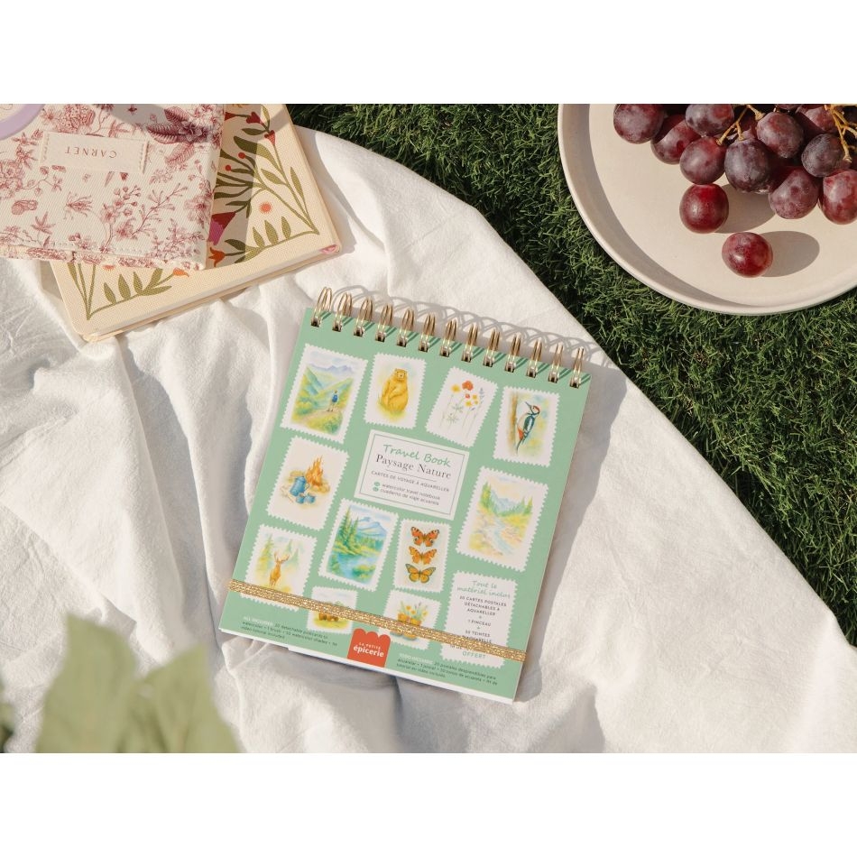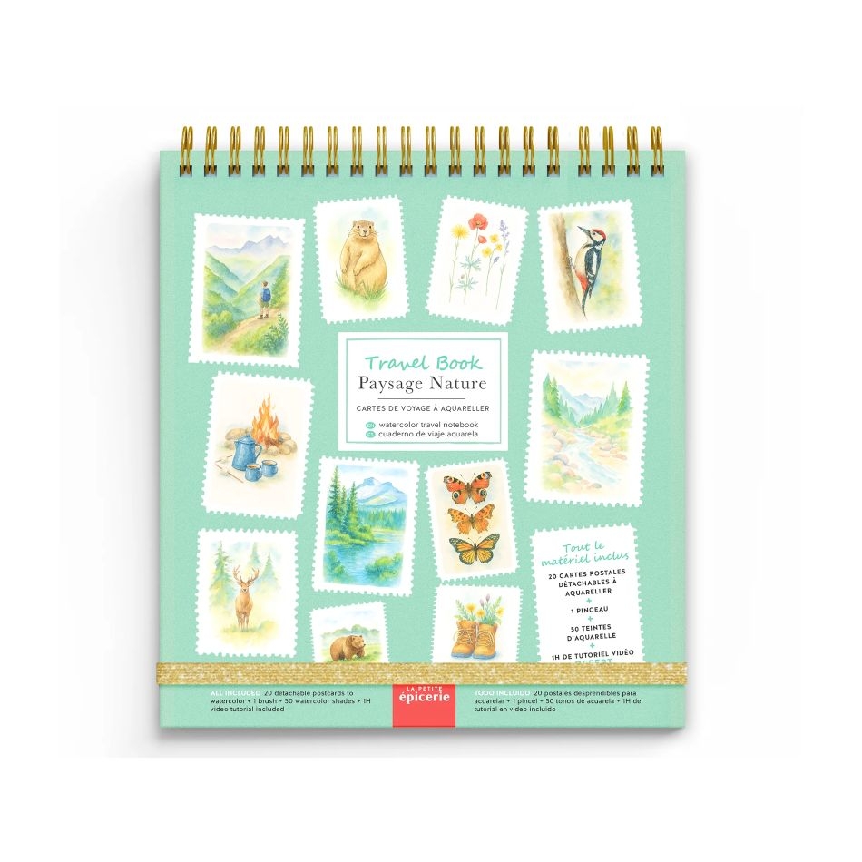 Αφεθείτε σε μια δημιουργική βόλτα στη φύση με το Travel Book – Paysage Nature, ένα καλλιτεχνικό carnet που σας προσκαλεί να ανακαλύψετε δάση, μονοπάτια και άγρια ζώα μέσα από την ακουαρέλα. Κάθε σελίδα είναι μια μικρή περιπέτεια στη φύση, ιδανική για να χαλαρώσετε, να ταξιδέψετε νοερά ή να αφιερώσετε λίγη ώρα στον εαυτό σας. Αυτό το πλήρες σετ έχει σχεδιαστεί ειδικά για αρχάριους: δεν χρειάζεται να ξέρετε να σχεδιάζετε! Οι 20 καρτ ποστάλ είναι ήδη προτυπωμένες, η πρώτη σελίδα περιλαμβάνει QR code για να έχετε άμεση πρόσβαση στο 1ωρο εκπαιδευτικό βίντεο, ενώ οι 50 έτοιμες αποχρώσεις ακουαρέλας σας επιτρέπουν να ξεκινήσετε άμεσα.