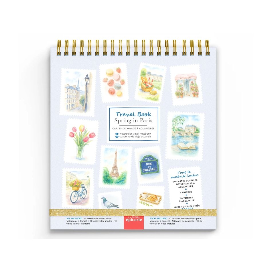 Αφεθείτε σε μια δημιουργική βόλτα στους ανθισμένους δρόμους του Παρισιού με το Travel Book – Spring in Paris, ένα χαριτωμένο carnet που σας προσκαλεί να ζωγραφίσετε μπουκέτα τουλίπες, τον ηλιόλουστο Πύργο του Άιφελ ή καλάθια γεμάτα μακαρόν. Κάθε σελίδα είναι μια μικρή παριζιάνικη περιπέτεια, ιδανική για να χαλαρώσετε και να εκφράσετε τη δημιουργικότητά σας. Οι 20 καρτ ποστάλ είναι ήδη προτυπωμένες, η πρώτη σελίδα περιλαμβάνει QR code για να έχετε άμεση πρόσβαση στο 1ωρο εκπαιδευτικό βίντεο, ενώ οι 50 έτοιμες αποχρώσεις ακουαρέλας σας επιτρέπουν να ξεκινήσετε άμεσα.