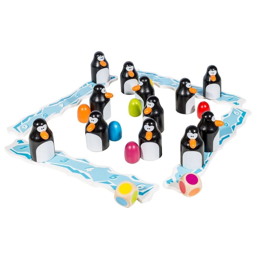 Περιλαμβάνει: 12 πολύχρωμα αυγά, 12 πιγκουίνους που κρύβουν χρώματα, 4 ξύλινες βάσεις παικτών, 1 ζάρι και Οδηγίες.