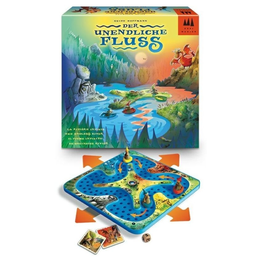 Βοηθήστε τους τρεις μικρούς μάγους να βρουν τον σωστό δρόμο προς τους έξι λιμένες, αλλά με μια μαγική ανατροπή: δεν κινείτε τα πλοία ή τις φιγούρες… αλλά ολόκληρο το ταμπλό! Κάθε γύρο, κάθε παίκτης λαμβάνει έναν μυστικό στόχο που δείχνει ποιον μάγο πρέπει να φτάσει στον προορισμό του. Προσοχή όμως: ο άπειρος ποταμός κινείται συνεχώς και μπορείτε κατά λάθος να οδηγήσετε και τους υπόλοιπους μάγους στο στόχο τους!