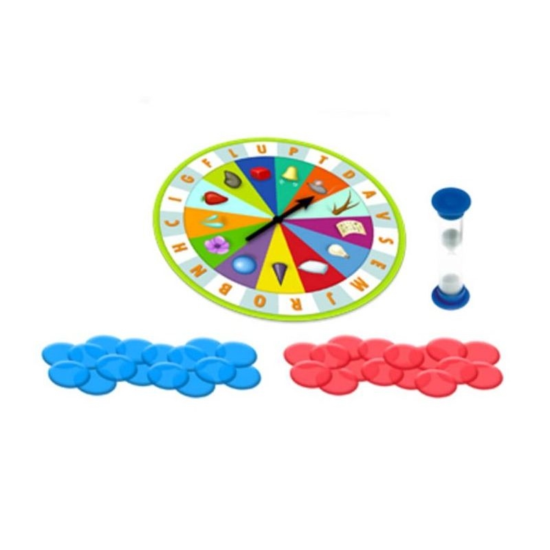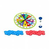 Περιλαμβάνει: 16 εικονογραφημένες καρτέλες, 1 κλεψύδρα, 1 τροχός, περίπου 80 μικρές μάρκες και οδηγίες.