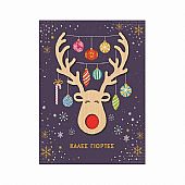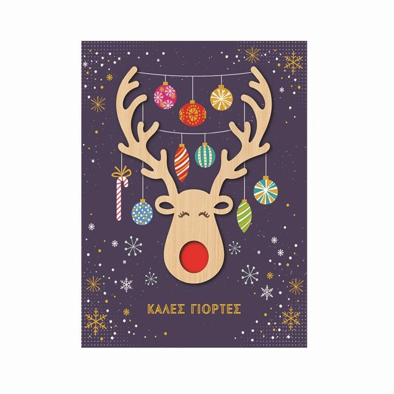 Χριστουγεννιάτικη Κάρτα με Ξύλινο Στολίδι & Φάκελο - Τάρανδος (10.5x11.3) - FunCreations