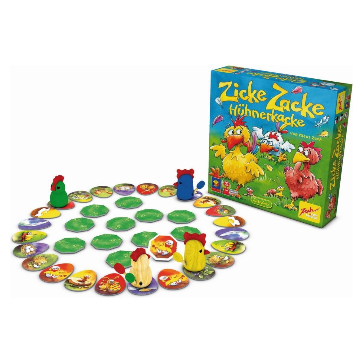 Βουτήξτε σε έναν διασκεδαστικό κόσμο κοκοριών με το Zicke Zacke Hühnerkacke! Σε αυτή την βραβευμένη εκδοχή του παιχνιδιού μνήμης, οι παίκτες παρακολουθούν τις κότες να τρέχουν γύρω από τη φάρμα, συλλέγοντας όμορφα ξύλινα φτερά από τις άλλες κότες για να στολίσουν την ουρά τους. Το παιχνίδι ξεκινά με γρήγορο ρυθμό: όταν αποκαλύπτετε ένα πλακίδιο με το σωστό μοτίβο, η κότα σας πηδάει στο επόμενο πλακίδιο. Αν η κότα σας προσπεράσει άλλη κότα, παίρνει όλα τα φτερά της και τα προσθέτει στη δική της ουρά! Αυτή η γρήγορη και διασκεδαστική κούρσα κοκοριών ενθουσιάζει μικρούς και μεγάλους.