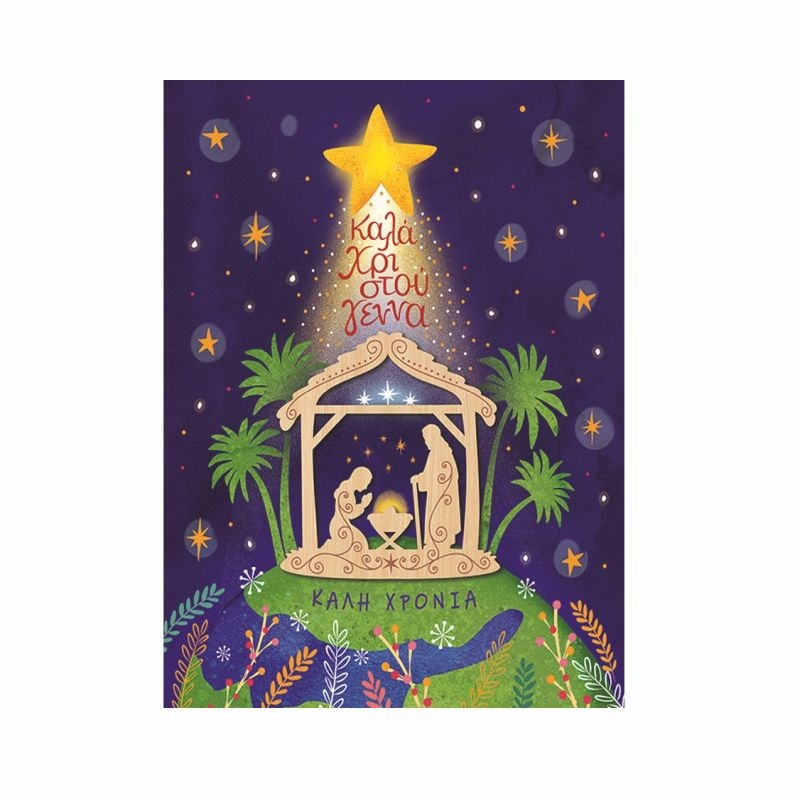 Χριστουγεννιάτικη Κάρτα με Ξύλινο Στολίδι & Φάκελο - Φάτνη (10.5x11.3) - FunCreations