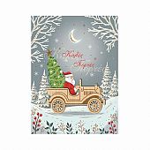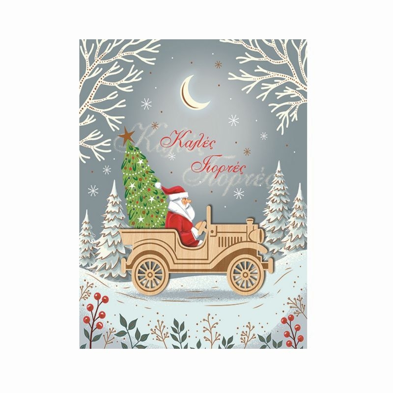 Χριστουγεννιάτικη Κάρτα με Ξύλινο Στολίδι & Φάκελο - Αυτοκίνητο Αντίκα (10.5x11.3) - FunCreations