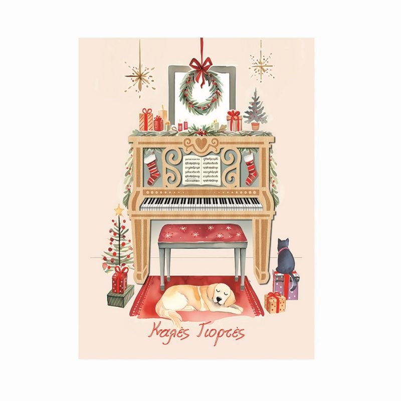 Χριστουγεννιάτικη Κάρτα με Ξύλινο Στολίδι & Φάκελο - Πιάνο (10.5x11.3) - FunCreations