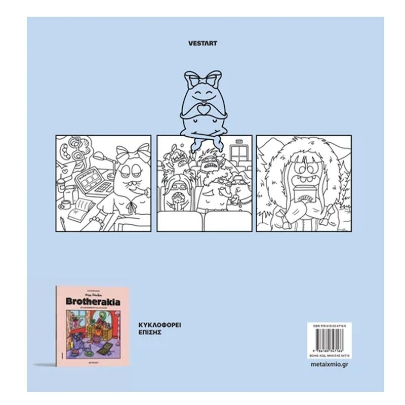 Μετά την απίστευτη αγάπη και ανταπόκριση που δείξατε στο πρώτο μου coloring book Brotherakia και όλο τον κόσμο που χτίστηκε γύρω του, ένιωσα πως ήρθε η στιγμή να μοιραστώ μαζί σας το επόμενο βήμα αυτού του ταξιδιού: το δεύτερο coloring book Brotherakia, Winter fades, color blooms κατέφθασε. Σε αυτό το βιβλίο θα βρεις 30 καινούρια σχέδια, στιγμές, εικόνες και ιδέες που γεννήθηκαν μέσα από την καθημερινότητα, την αγάπη μου για τον χειμώνα και τα όνειρα που με συντροφεύουν. Κάθε σελίδα είναι μια νέα ευκαιρία για δημιουργία, μια πρόσκληση να παίξεις με τα χρώματα και να δώσεις τη δική σου ζωή στις γραμμές. Η ζωγραφική για μένα είναι τρόπος να χαλαρώνω, να ανασαίνω και να ξαναβρίσκω την έμπνευση μέσα από τα πιο μικρά πράγματα. Εύχομαι το ίδιο να συμβεί και σε σένα μέσα από αυτές τις σελίδες· να αφήσεις για λίγο στην άκρη τις σκέψεις και να χαθείς στο χρώμα, στη φαντασία, στην ελευθερία που προσφέρει το παιχνίδι με το χαρτί. Αυτό το δεύτερο coloring book είναι η συνέχεια μιας όμορφης διαδρομής που ξεκινήσαμε μαζί. Και ειλικρινά ελπίζω να σου κρατήσει συντροφιά, να σε εμπνεύσει και να γεμίσει τον δικό σου κόσμο με χαρά, δημιουργικότητα και χρώμα.