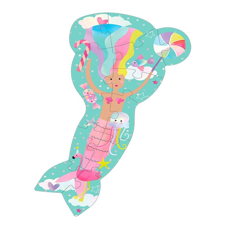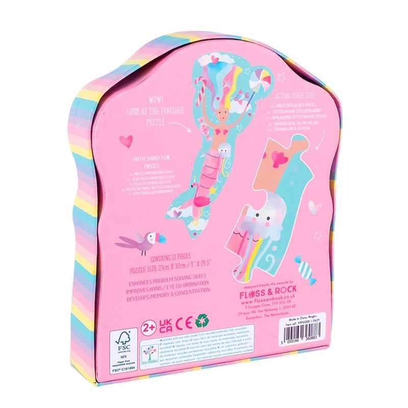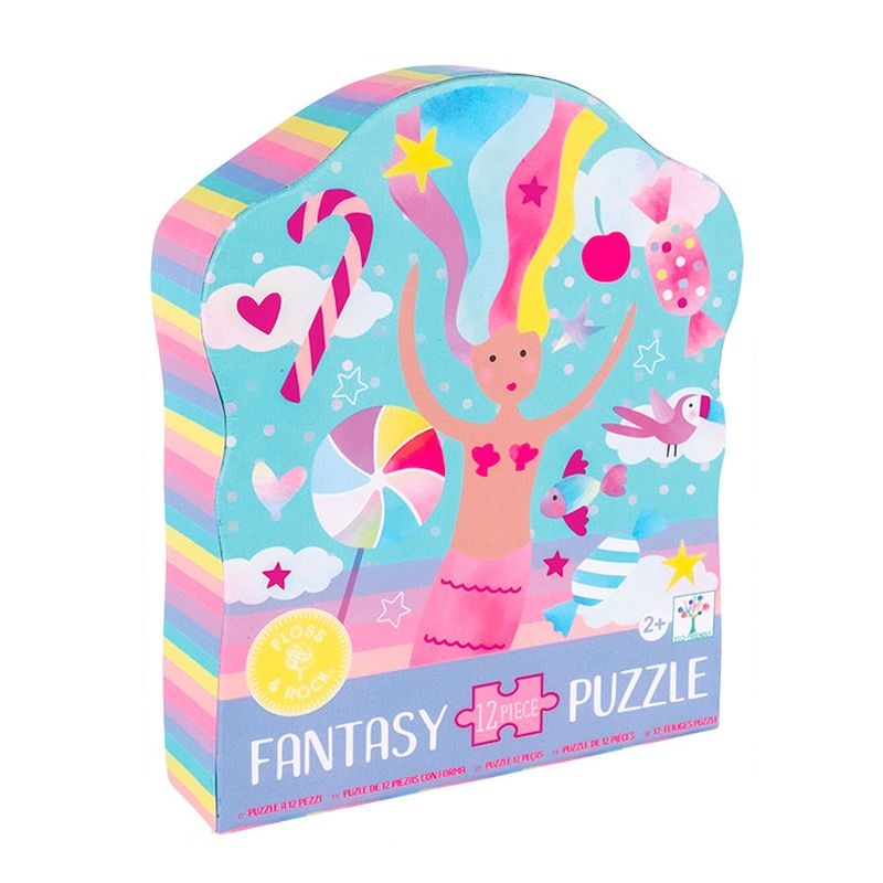 Ένα υπέροχο παζλ από τη Floss & Rock με μαγευτικό φανταστικό–ονειρικό θέμα! Το παζλ έρχεται σε εντυπωσιακή συσκευασία με πολύχρωμο σχέδιο που θυμίζει παραμυθένιο κόσμο, γεμάτο αστέρια, σύννεφα, καραμέλες, γλειφιτζούρια και χαριτωμένα ζωάκια. Στην εικόνα του κουτιού απεικονίζεται μια χαρούμενη φιγούρα με πολύχρωμα μαλλιά, περιτριγυρισμένη από ζαχαρωτά και ιπτάμενα στοιχεία, δημιουργώντας μια ζωντανή και μαγική ατμόσφαιρα. Το παζλ αποτελείται από 12 κομμάτια.