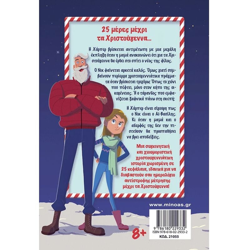 Η Χάρπερ βρίσκεται αντιμέτωπη με μια μεγάλη έκπληξη όταν η μαμά ανακοινώνει ότι για τα Χριστούγεννα θα έρθει στο σπίτι ο νέος της φίλος. Ο Νικ φαίνεται αρκετά καλός. Όμως γιατί συμβαίνουν περίεργα χριστουγεννιάτικα πράγματα όταν βρίσκεται τριγύρω; Όπως το χιόνι που πέφτει, μόνο στον κήπο της οικογένειας. Ή ο τάρανδος που εμφανίζεται ξαφνικά πάνω στη σκεπή; Η Χάρπερ είναι σίγουρη πως ο Νικ είναι ο Αϊ-Βασίλης. Κι όταν η μαμά και ο αδερφός της δεν την πιστεύουν θα προσπαθήσει να βρει αποδείξεις. Μια συγκινητική και χιουμοριστική χριστουγεννιάτικη ιστορία χωρισμένη σε 25 κεφάλαια, ιδανικά για να διαβαστούν σαν ημερολόγιο αντίστροφης μέτρησης μέχρι τα Χριστούγεννα!