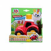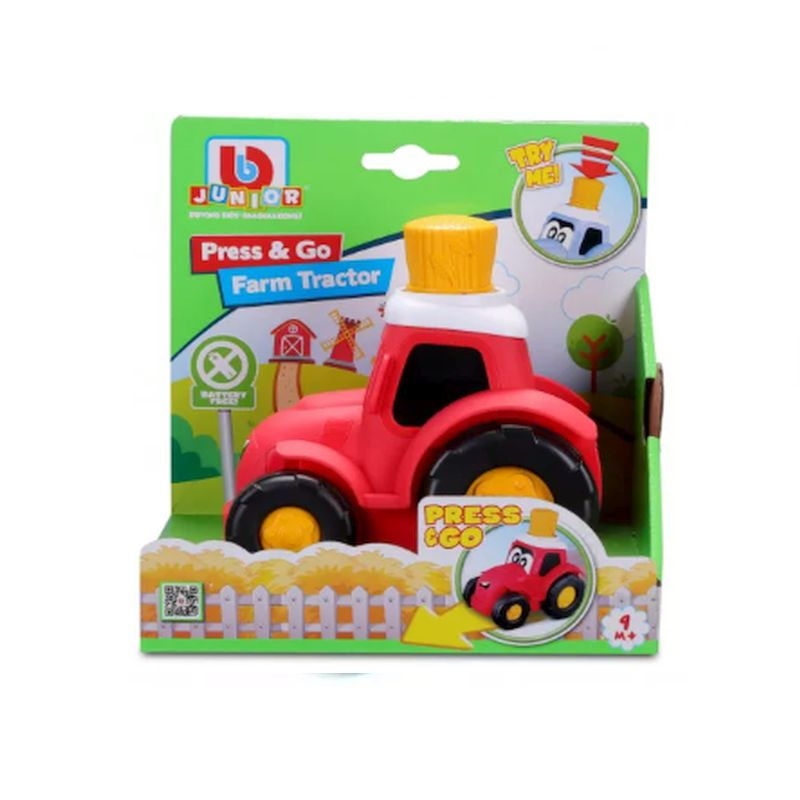 ΒΒ Junior Press & Go Farm Tractor είναι ένα διασκεδαστικό, διαδραστικό τρακτέρ με κόκκινο χρώμα και εύχρηστο σχεδιασμό. Τα μικρά παιδιά μπορούν απλώς να πατήσουν την μπάλα με το άχυρο στην κορυφή του τρακτέρ για να το θέσουν σε κίνηση. Καθώς το τρακτέρ προχωρά προς τα εμπρός, ενθαρρύνει την κίνηση και το φανταστικό παιχνίδι, βοηθώντας στην ανάπτυξη κινητικών δεξιοτήτων και συντονισμού.