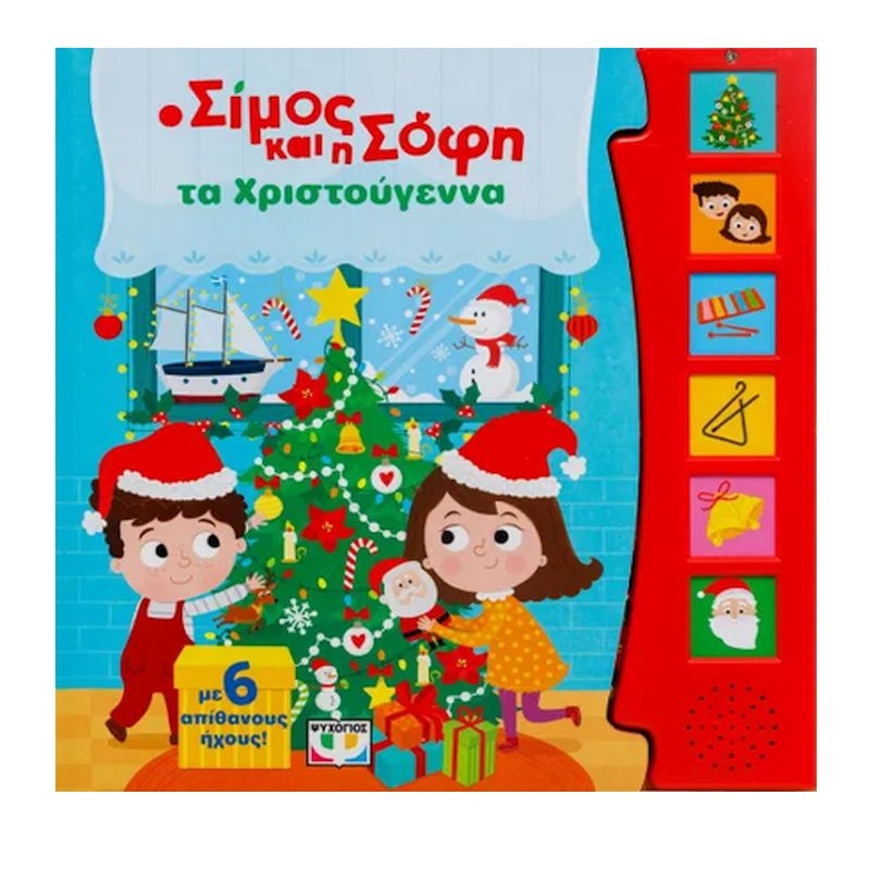 Γιόρτασε τα Χριστούγεννα παρέα με τον Σίμο και τη Σόφη! Στόλισε το δέντρο, τραγούδησε τα κάλαντα και ζήσε μαζί τους τη μαγεία των γιορτών, πατώντας τα κουμπάκια αυτού του απίθανου γιορτινού βιβλίου!