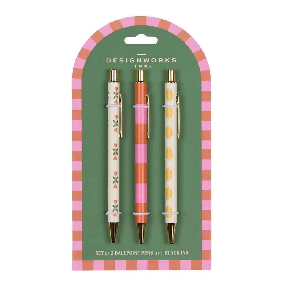 Σετ Στυλό πολυτελείας Slim Metal Twisty Flower, Stripe & Lemon - Μαύρο (3τμχ./1.0mm) - Designworks Ink