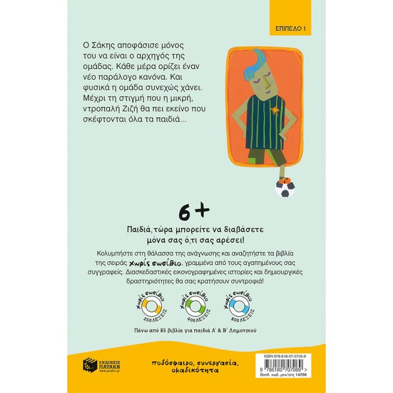 Ο Σάκης αποφάσισε μόνος του να είναι ο αρχηγός της ομάδας. Κάθε μέρα ορίζει έναν νέο παράλογο κανόνα. Και φυσικά η ομάδα συνεχώς χάνει. Μέχρι τη στιγμή που η μικρή, ντροπαλή Ζιζή θα πει εκείνο που σκέφτονται όλα τα παιδιά…