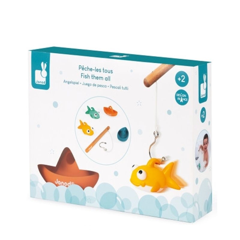 Ανακαλύψτε τη μαγεία του παιχνιδιού ψαρέματος με το “Fish Them All” της Janod! Ιδανικό για παιδιά ηλικίας 2 ετών και άνω, αυτό το ξύλινο παιχνίδι περιλαμβάνει 4 πιτσιλιστήρια και ένα μαγνητικό καλάμι ψαρέματος. Τα μικρά σας μπορούν να πιάσουν τα βαρκάκια και τα ψαράκια όσο πιο γρήγορα μπορούν, ενώ αναπτύσσουν λεπτή κινητικότητα, συντονισμό χεριού-ματιού και συγκέντρωση. Το παιχνίδι είναι τέλειο για το μπάνιο ή το παιχνίδι στο νερό, προσφέροντας ατελείωτες ώρες διασκεδαστικού και εκπαιδευτικού παιχνιδιού. Καθώς ψαρεύουν, τα παιδιά μαθαίνουν να συνεργάζονται, να παρατηρούν και να αποκτούν αυτοπεποίθηση στις κινήσεις τους όλα μέσα από ένα ασφαλές, ξύλινο παιχνίδι υψηλής ποιότητας.