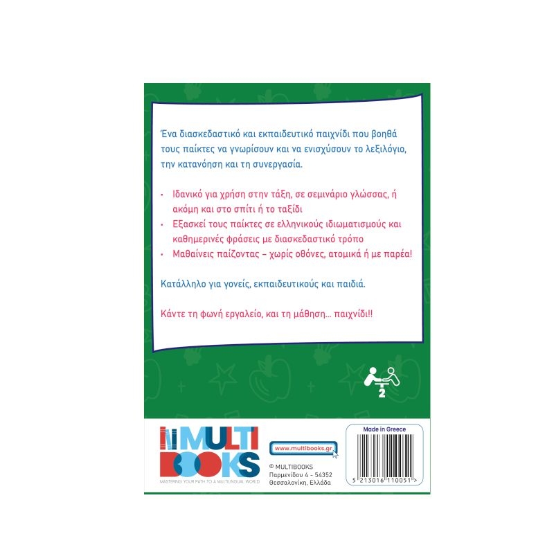 Η θεματική ενότητα Mini Flashcards - Ιδιωματισμοί μαθαίνει στους παίκτες μέσα από ελληνικούς ιδιωματισμούς και καθημερινές φράσεις να γνωρίσουν και να ενισχύσουν το λεξιλόγιο, την κατανόηση και τη συνεργασία.
