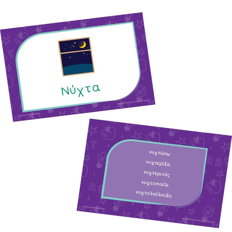 Η θεματική ενότητα Mini Flashcards - Παράγωγα (οικογένειες λέξεων) βοηθά τους παίκτες να ανακαλύψουν πώς οι λέξεις «μεγαλώνουν», να κατανοήσουν οικογένειες και παράγωγα και να ενισχύσουν τον γραπτό και προφορικό τους λόγο μέσα από έξυπνους και ευχάριστους συνδυασμούς.