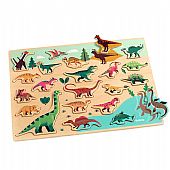 Ποιο δεινοσαυράκι απεικονίζεται στο ξύλινο κομμάτι; Που ταιριάζει ο δεινόσαυρος αυτός: στην ξηρά, στη θάλασσα ή στον ουρανό; Ξύλινο παζλ σφηνωμάτων της εταιρείας Djeco, με το οποίο τα παιδιά αναγνωρίζουν τους διαφορετικούς δεινόσαυρους και ανακαλύπτουν σε ποιο περιβάλλον ανήκουν. Μία εκπαιδευτική δραστηριότητα που αναπτύσσει τη λεπτή κίνηση, την παρατηρητικότητα και τον συντονισμό χεριών- ματιών των παιδιών και τα βοηθά να κατανοήσουν τα διαφορετικά χρώματα, σχήματα και μεγέθη. Η βάση και οι φιγούρες του παζλ είναι κατασκευασμένα από μασίφ ξύλο καουτσουκόδεντρου και χάρη στο τρισδιάστατο μέγεθός τους, μπορούν να αποτελέσουν ξεχωριστό παιχνίδι ρόλων, το οποίο βοηθάει στην ανάπτυξη της φαντασίας και του διαλόγου.