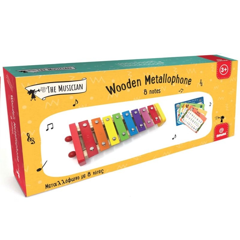Για μικρούς επίδοξους μουσικούς, πολύχρωμο μεταλλόφωνο σε ξύλινη βάση με 8 νότες (1,5 οκτάβας) από την Ελληνική εταιρία Svoora, το οποίο συνδυάζει εξαιρετικά τον σύγχρονο με τον παραδοσιακό σχεδιασμό.